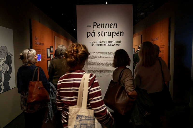 Satiretegninger og historiske veivalg i utstilling og arrangementer