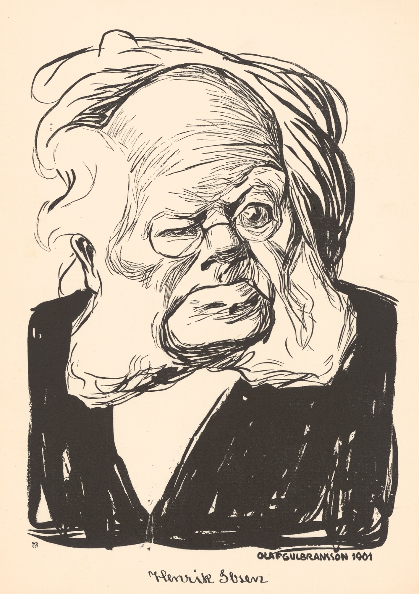 Henrik Ibsen. Karikaturtegning av Olaf Gulbransson