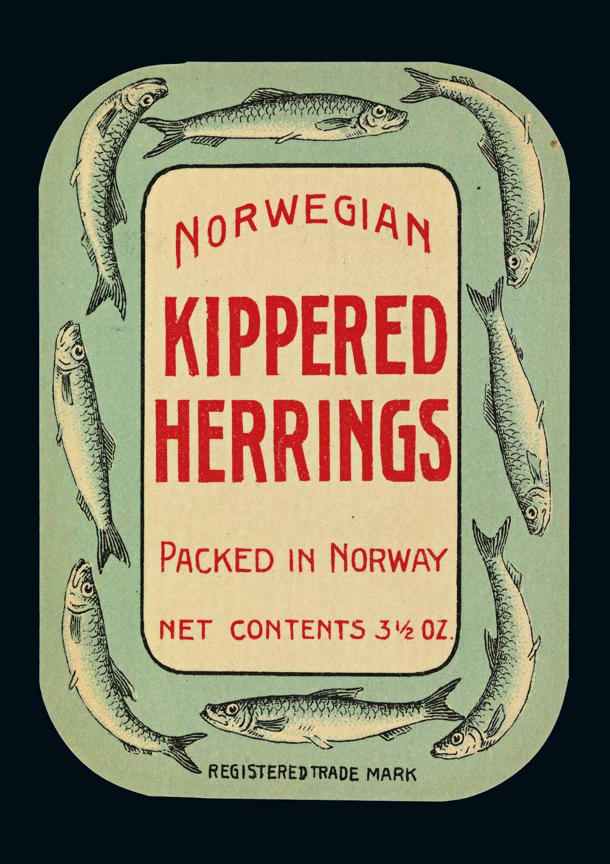 Norsk sardinetikett («Kippered herrings»), 1914