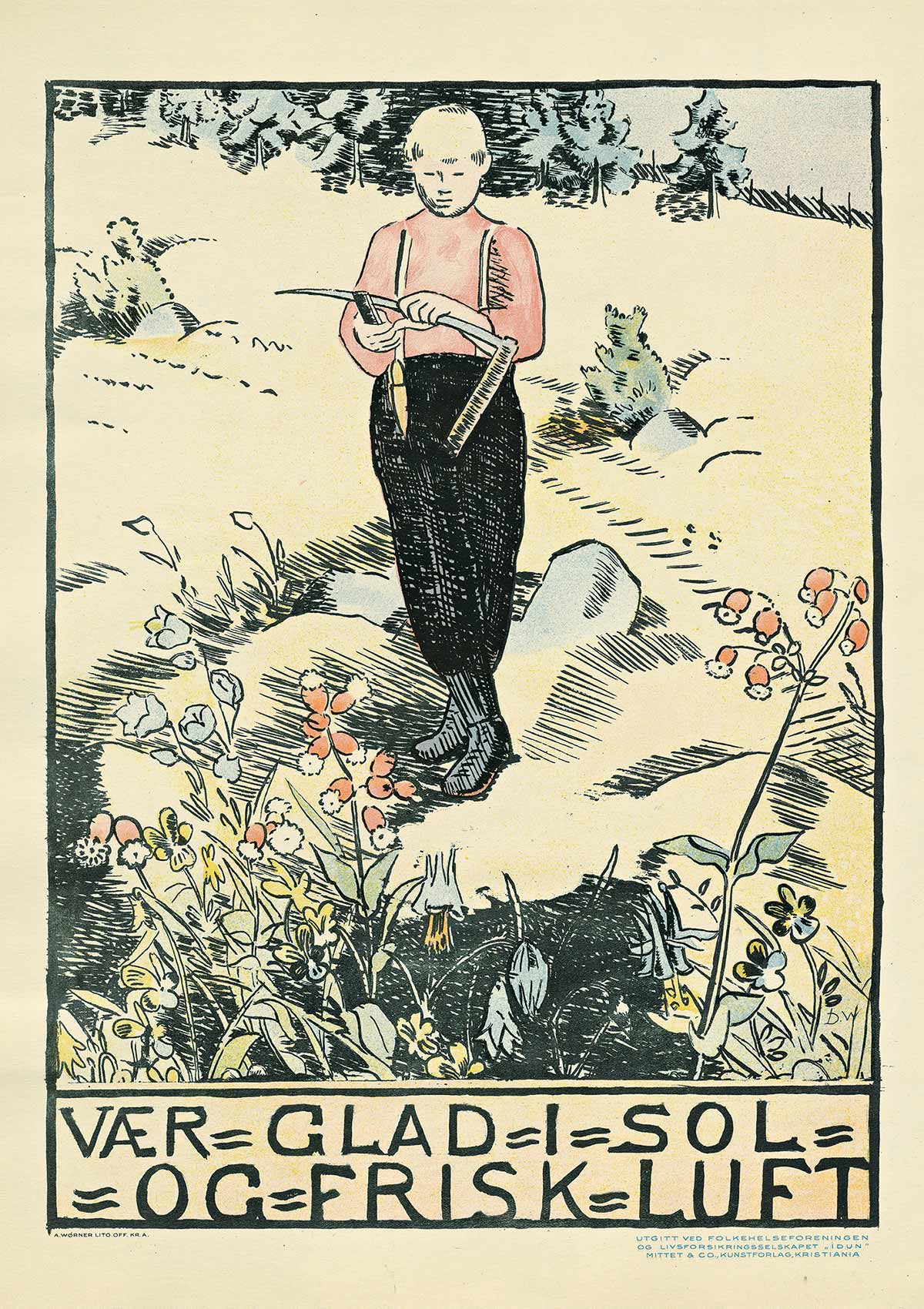 Sunnhetslære fra Folkehelseforeningens utgivelse Hustavler for mor og barn (1923). Illustrasjon av Dagfin Werenskiold (1892–1977). © Dagfin Werenskiold/BONO 2017