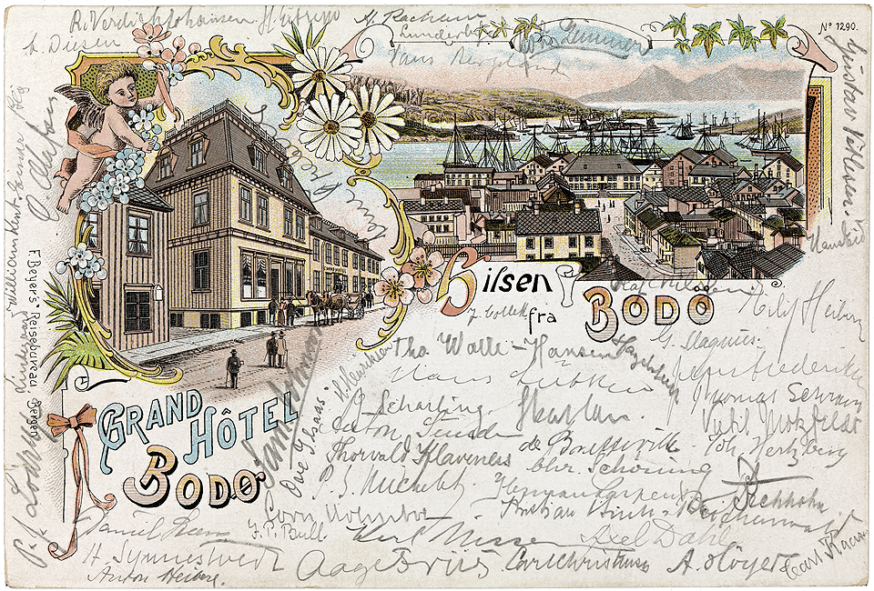 I 1910 ble det sendt ca. 17 millioner kort. Postkort, Hilsen fra Bodø, 1902